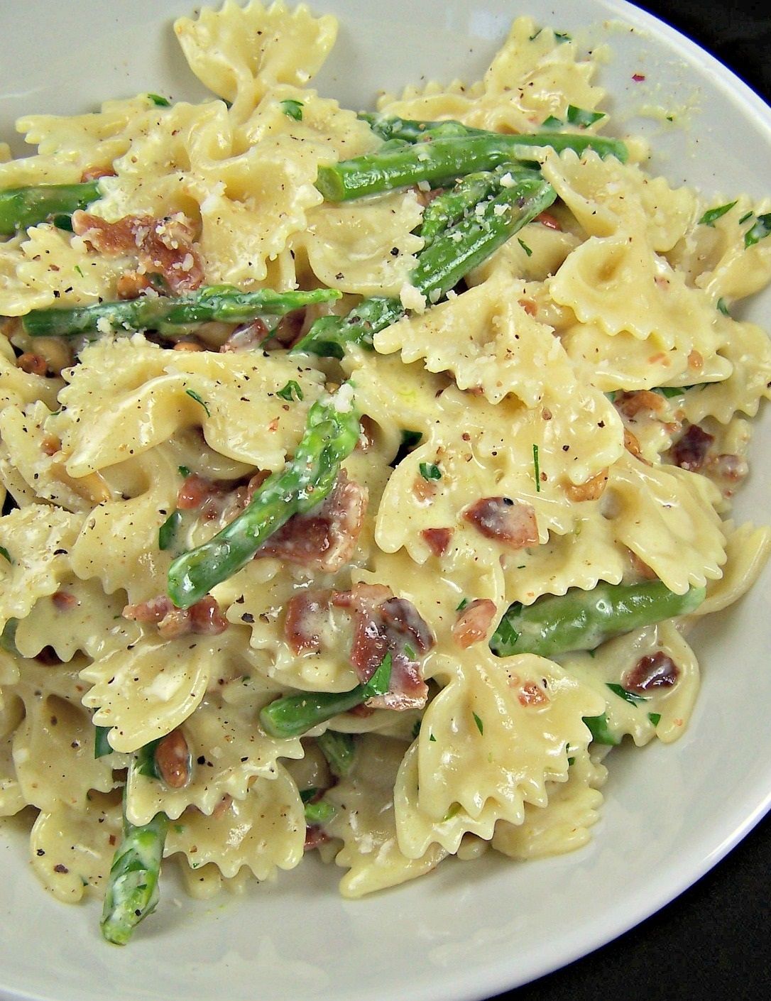 Ingredients: 4 ounces bow tie pasta 2 Tablespoons unsalted butter 1 clove garlic, finely minced 1/3 cup grated Parmesan cheese 1 teaspoon chicken soup base (I use L.B. Jamison) 2/3 cup heavy cream Salt & freshly ground black pepper, to ...