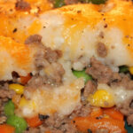 - Serve with a garnish of shredded cheddar cheese, and a couple of slices of warm dark Russian Bread.